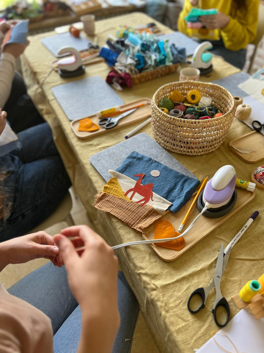 הסדנאות מאפשרות התנסות בחומרי גלם איכותיים ורכים, בטכניקות של עבודת טלאים ודמיון חופשי המביא לידי ביטוי את עולמנו הפנימי.
