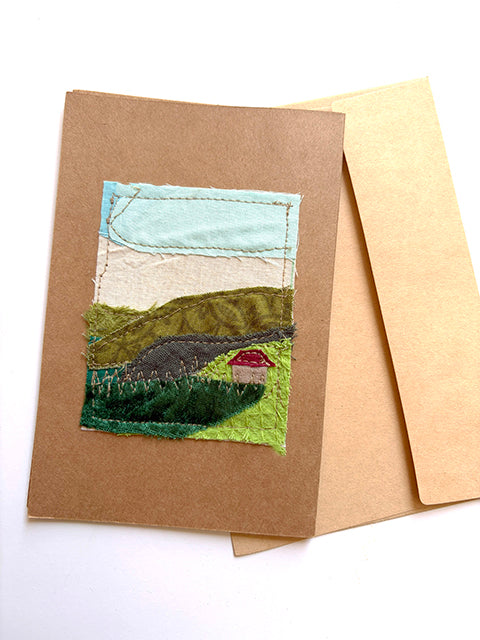 כל כרטיס מגיע עם מעטפה חומה, נעשה בעבודת יד מוקפדת מבדים איכותיים, בטכניקה שמחברת בין טקסטיל - לאומנות